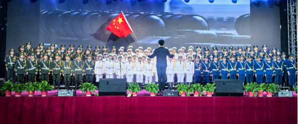 新能源(能源与电力)学院的同学们以饱满的热情演唱了《中国军魂》和《我们都是追梦人》,这些歌曲不仅唤起了大家对美好未来的憧憬,同时也激发了强烈的民族自豪感和历史使命感。
